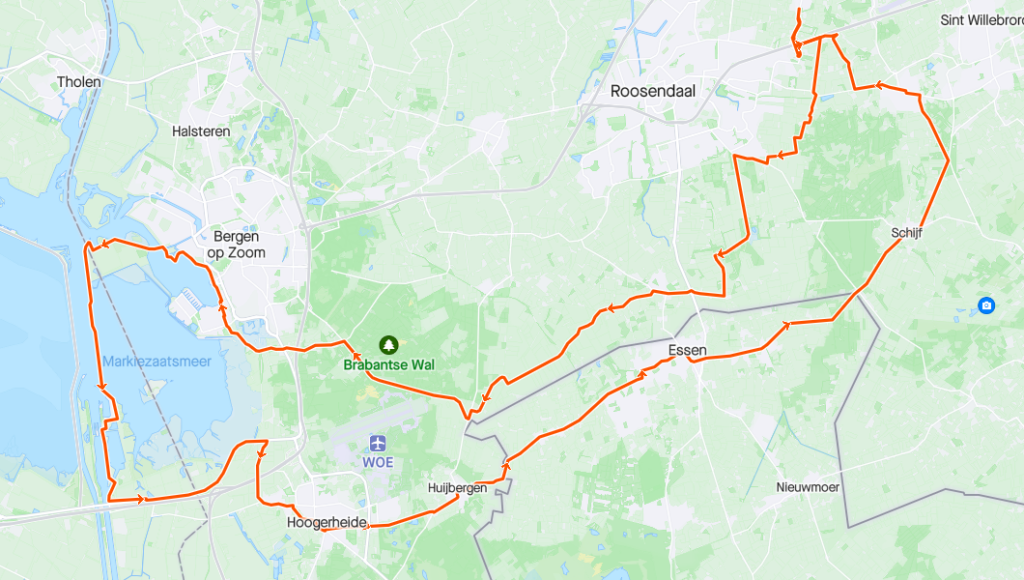 Route 8 / Oesterdam via Hoogerheide / 87,85 km / A, B, C groep