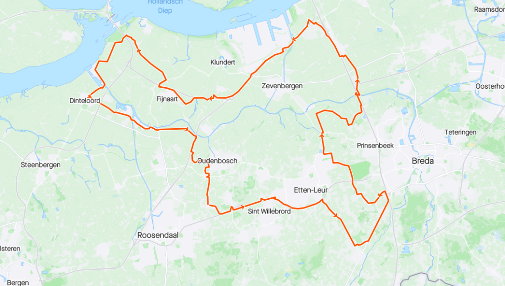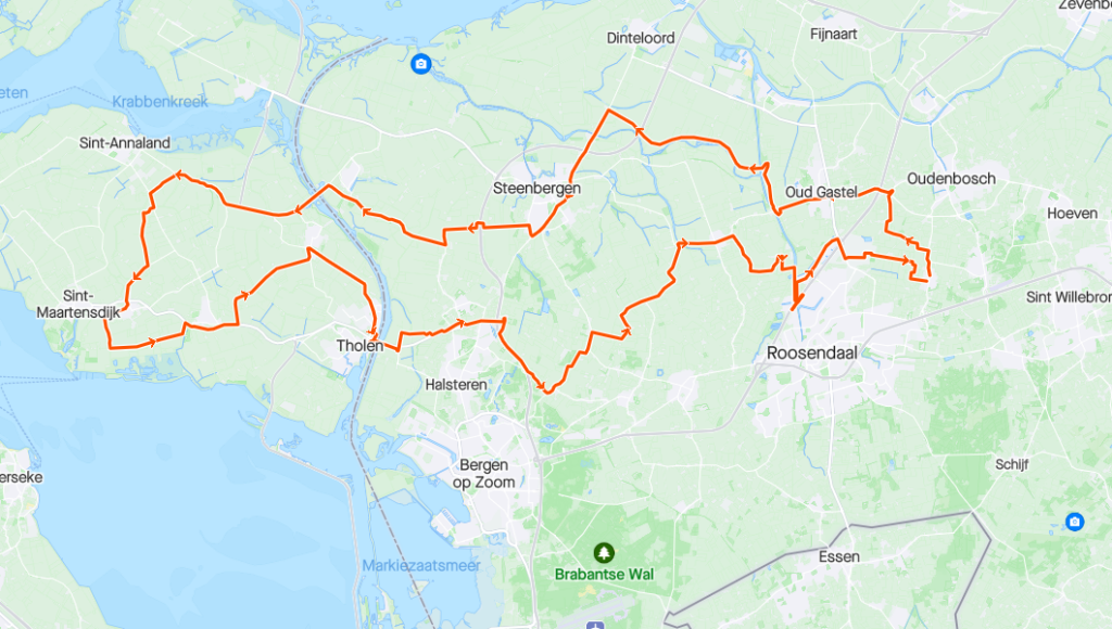 Route 11 / Oesterdam andersom via Roosendaal en Kruisland / 94,25 km / A, B, C groep